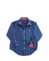 Blue Pin Stripe shirt with white polka dot cuffs