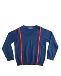 Blue pullover sweater with 2 vertical stripes